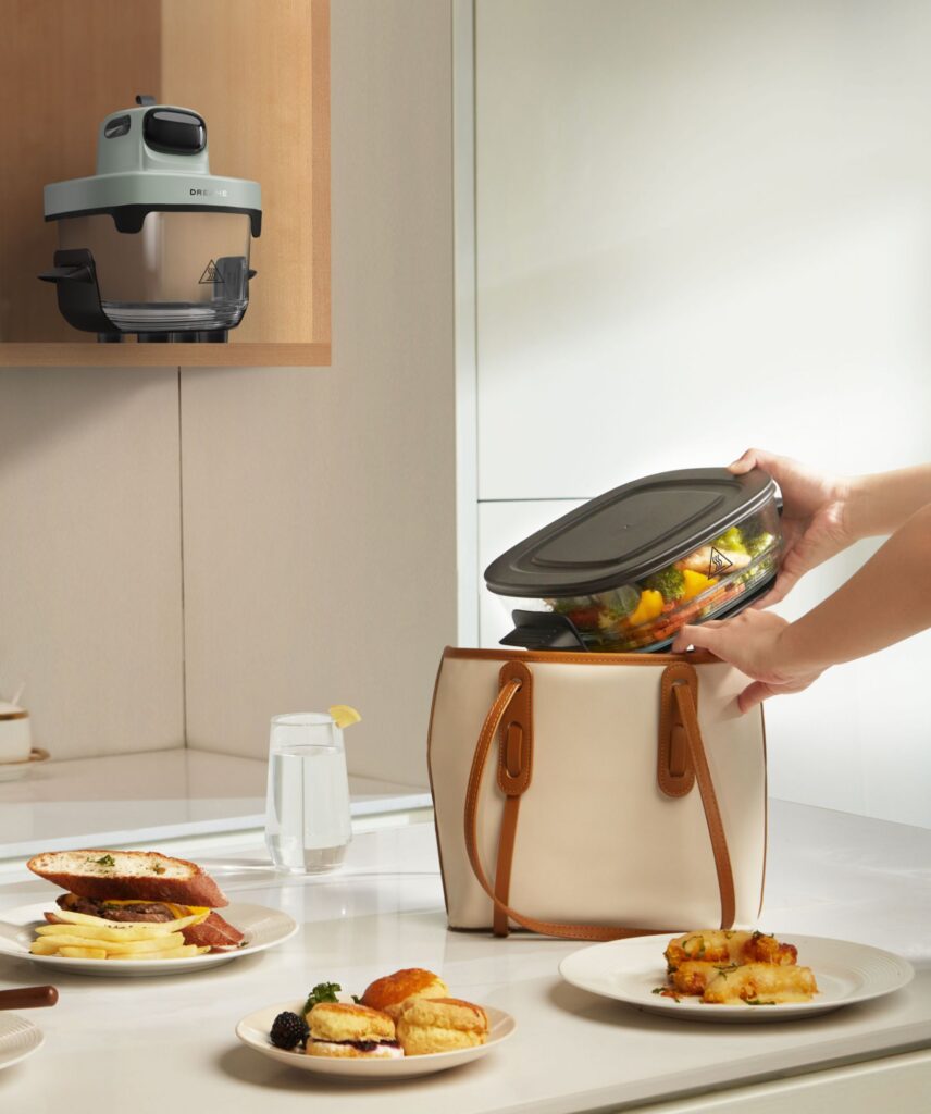 un elettrodomestico portatile 5-in-1 che unisce praticità, design simpatico e tecnologia in un unico prodotto. Non è solo una friggitrice ad aria, ma anche un contenitore per il pranzo.