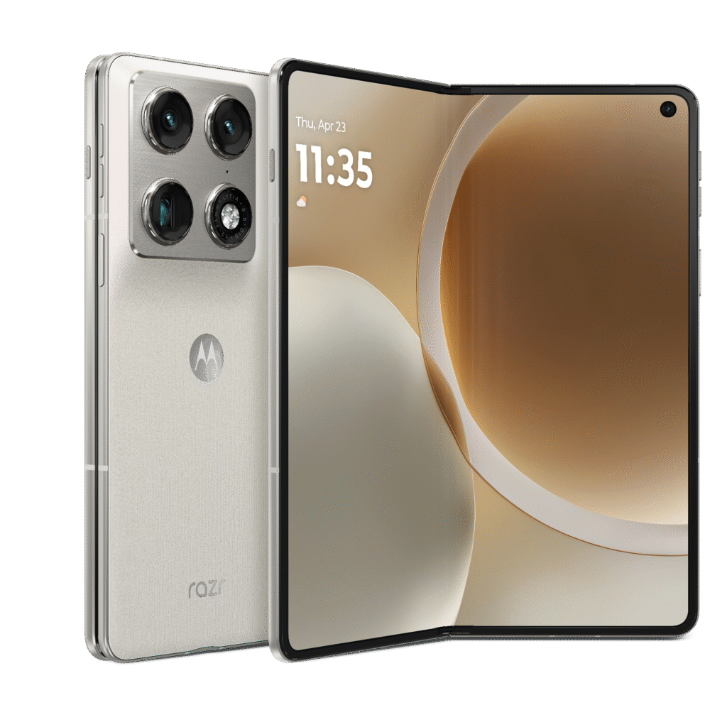Il Razr Fold adotta un display interno Oled Ltpo da 8,1 pollici in risoluzione 2K e uno schermo esterno da 6,6 pollici, pensato per un uso quotidiano completo. Sarà disponibile in due varianti cromatiche: Pantone Blackened Blue e Lily White.